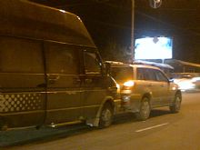 Водитель микроавтобуса рассказал, что видел, как в то время, когда Outlander отъезжал назад, его водитель даже успел снять с себя куртку. А так как на этом участке дороги подъем, водитель, скорее всего, отпустил педаль тормоза и автомобиль плавно покатился назад. Как результат – бамперы обеих машин получили «механические травмы».