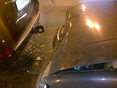 В результате столкновение с мощнейшим фаркопом внедорожника, несчастный Fiat остался без радиатора, радиаторной решетки и вообще без всего, что находится у автомобиля спереди. Fiat довольно старенький и поэтому не застрахован, чего нельзя сказать о новеньком гордом и застрахованном Land Cruiser.