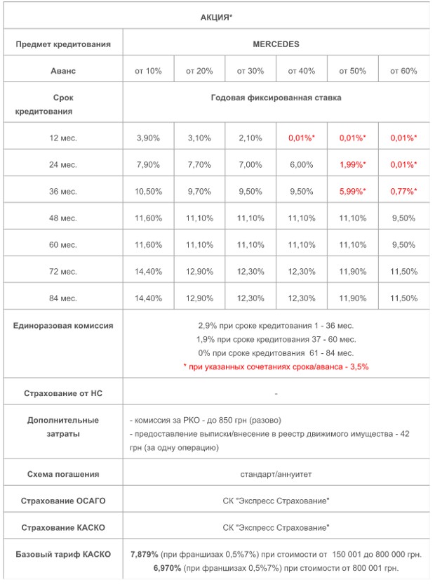 Теперь доступно кредитование покупки нового автомобиля Мercedes – Benz под 0,01% годовых на два года*. Более детальная информация в таблице.