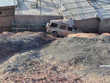 Марка автомобиля Nissan Patrol. Номера белорусские. Автомобиль двигался по улице Старая Дача в направлении к центру регулирования движения судов. На одном из поворотов не справился с управлением и пролетев более 20 метров, остановился, ударившись о гараж.