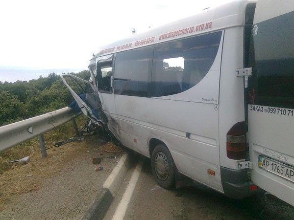 17 пассажиров автобуса (большинство которых граждане РФ) получили разные телесные повреждения из-за столкновения легкового автомобиля с микроавтобусом, которое произошло 22 августа около 14:30 возле поселка Кацивели (Крым) на 26 км трассы "Симферополь - Ялта - Севастополь".