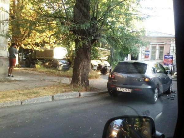 В оккупированном Симферополе произошло дорожно-транспортное происшествие с участием реактивной системы залпового огня БМ-21 "Град".