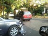 Пострадала передняя часть автомобиля Mazda, на корпусе "Града" видимых повреждений нет.