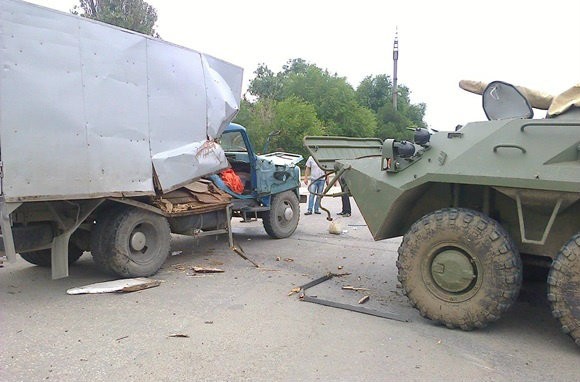 ДТП произошло в Джанкое. БТР российских военных столкнулся с грузовиком под управлением гражданского лица, сообщает .
