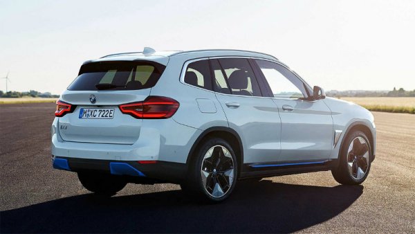От «традиционного» X3 электрическая версия внешне отличается, прежде всего, оформлением передней части: у iX3 заглушка вместо радиаторной решетки, при этом ее сделали в виде фирменных «ноздрей». Кстати, у прототипа двухлетней давности были сросшиеся «ноздри», но у товарного SUV все же появилась перемычка. Кроме того, по бокам и на корме серийного электрокара есть декоративные детали синего цвета, а еще он «стоит» на 19-дюймовых «аэродинамических» колесах.