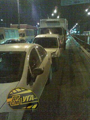 Все происходило следующим образом. На светофоре, ожидая разрешающего сигнала, стояли один за другим Toyota Corolla, Peugeot Partner и Fiat Linea. Вдруг, едущий сзади "Бычок" ударил Partner, который от удара отбросило в стоявший впереди Fiat. Последний, в свою очередь, также одарил "поцелуем" Toyota. По словам водителя ЗИЛа, он лишь хотел обогнать автобус.