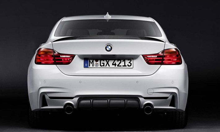 Автомобиль с М-пакетом выглядит намного агрессивнее стандартного купе. Купе 4-Series получило новый передний бампер, диффузор, иную выхлопную систему, карбоновые накладки, уникальные зеркала заднего вида, светодиодные фары и 20-дюймовые колесные диски с оригинальным рисунком.