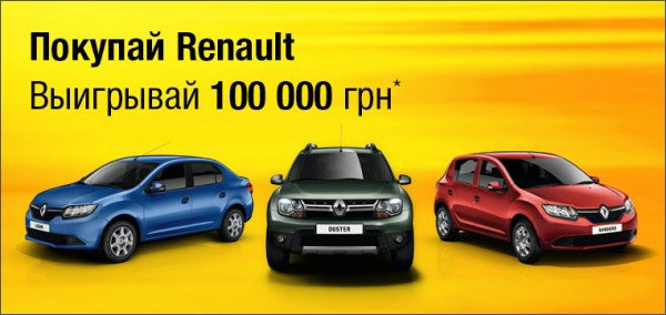 «Купи автомобиль RENAULT и  выиграй 100 000 грн»*