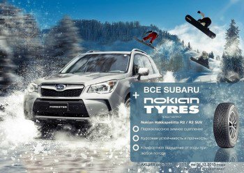 С 15 октября 2013 года в автосалоне Субару Центр Альфастартует акция– приобретая Subaru 2013 – 2014 модельных годов предоставляется комплект зимней резины Nokian.