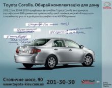 С 1-го марта по 30-ое апреля 2010-го года каждый покупатель Toyota Corolla получает сертификат на 800 грн. на приобретение бытовой техники в сети «Эльдорадо»!.