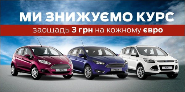 Тільки у квітні поспішіть придбати будь-який автомобіль із нашої модельної колекції за неабиякою вигідною ціною. Турбуючись про кожного клієнта, ми пропонуємо Вам співпрацю на ще вигідніших умовах: завжди комфортний і стильний Ford Ви можете придбати за курсом євро, що став нижчим на 3 гривні!