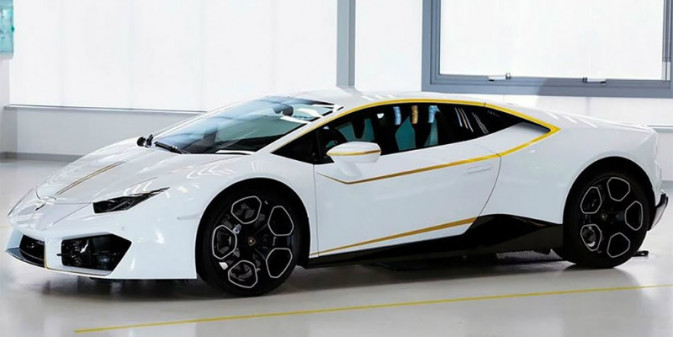 Компания Lamborghini подарила Папе Римскому Франциску специальную версию спорткара Huracan, которая была создана в единственном экземпляре, в ноябре прошлого года. Кузов автомобиля окрашен в золотой и белый цвета.