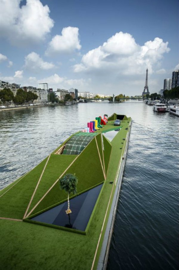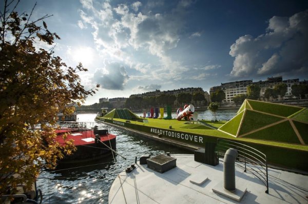 - Discovery Sport представлен на 80-метровой барже на реке Сена в центре Парижа
