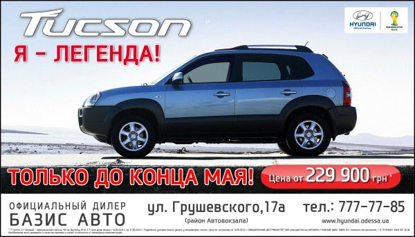 Стать обладателем автомобиля Tucson в настоящее время особенно выгодно в связи со специальным предложением в Автоцентре HYUNDAI БАЗИС АВТО. Стоимость Hyundai Tucson стартует от 229 900 грн!