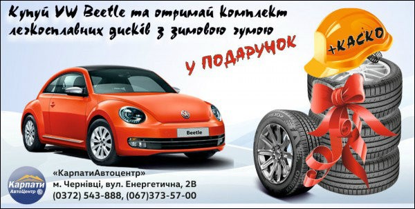 Автосалон «КарпатиАвтоцентр» піклується про кожного автолюбителя Volkswagen Beetle і додаємо вигоди до купівлі Volkswagen Beetle в комплектації Summer Life! Отримуючи комплект легкосплавних дисків із зимовою гумою додатково в подарунок до привабливої цінової пропозиції також маєте можливість гарантовано отримати повний страховий пакет КАСКО з франшизою 0,5% на перший рік!.
