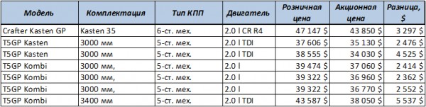 Так, например, приобрести VW Passat CC 2.0 TSI с 6-ти ступенчатой КПП возможно по цене $46 875, при этом сэкономив $3 311. Ознакомиться с моделями и акционными ценами можно в предложенной таблице: