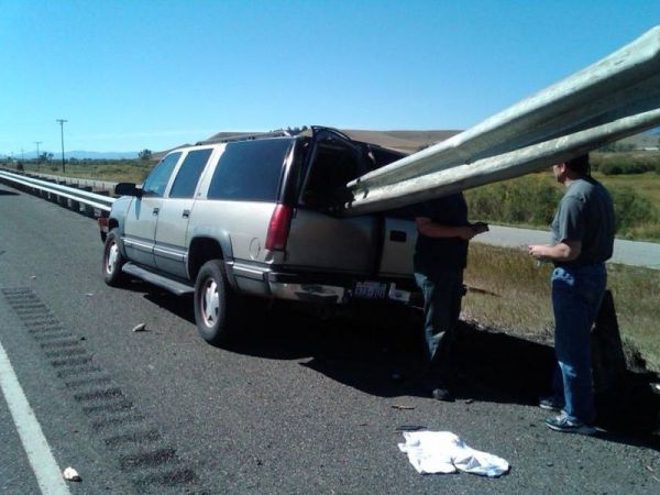 А и совершать перемещения по рельсам! И не просто переехать железнодорожные пути в не самом положенном месте, а стать монорельсовым транспортным средством! Такая трансформация не предусматривалась заводом, но пытливый ум всегда докопается до сути. В данном случае, этот ум в буквальном смысле "насадил" большой Chevrolet на дорожный отбойник. Информации о пострадавших нет.