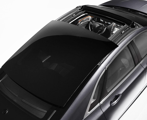 Площадь панорамной крыши составляет 1,41 квадратных метра, толщина стекла равна пяти миллиметрам, а специальная тонировка с фактором защиты SPF 100 дает эффективную защиту от солнца. Крыша сдвигается к заднему стеклу с помощью двух электромоторов за десять секунд. При этом на скорости свыше 65 километров в час крыша автоматически сдвинется вперед на 20,3 сантиметра для уменьшения шума и турбулентности воздушных потоков в салоне.
