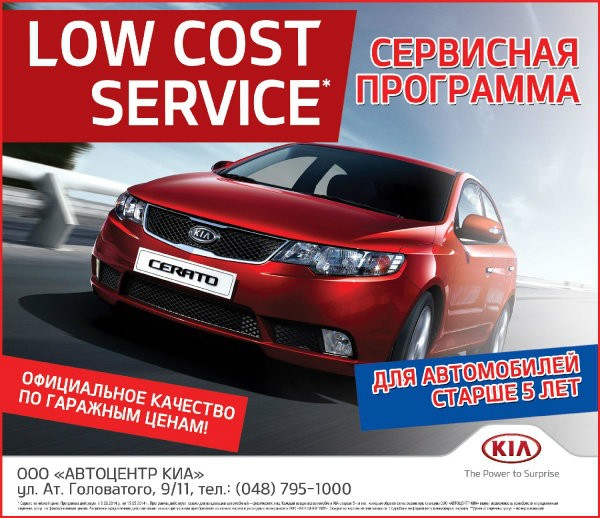 Не верите? Официальный сервисный центр ООО «АВТОЦЕНТР КИА» представляет Вашему вниманию продленную программу "LOW COST SERVICE"!