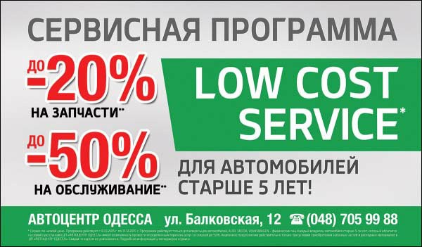 Для сохранения преимуществ Вашего автомобиля на годы вперед ДП «АВТОЦЕНТР ОДЕССА», предлагает Вам Обновлённую программу "LOW COST SERVICE"!