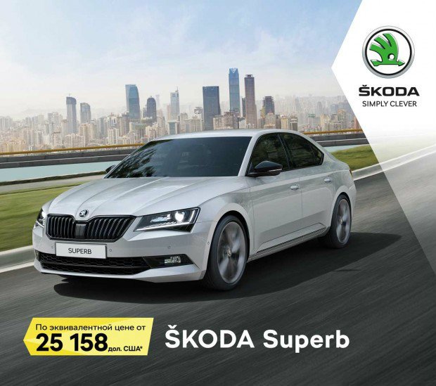 *Специальная цена действует с 5 по 31 октября 2017 года. Стоимость указана для модели ŠKODA Superb в комплектации Active 1,8 TSI/132 кВт DSG, стоимость составляет 691 316 гривен по состоянию на 05.10.2017 г., что является эквивалентом 25 158 дол. США, по используемому компанией «Еврокар» расчетному курсу гривны к доллару США – 27, 479грн./$ (курс НБУ+2,5%).Стоимость модели ŠKODA Superb в комплектации L&K 1,8 TSI/132 кВт DSG, составляет 980 752 гривен, что является эквивалентом 35 691 дол. США. Стоимость указана в национальной валюте Украины и изменяется на дату оплаты прямо пропорционально изменению курса доллара США, установленного НБУ на дату оплаты по сравнению с курсом доллара США, установленном НБУ на 05.10.2017 г. Специальная цена распространяется на автомобили, кроме территории свободной экономической зоны «Крым», а также временно оккупированных территорий Донецкой и Луганской областей. Количество автомобилей ограничено.