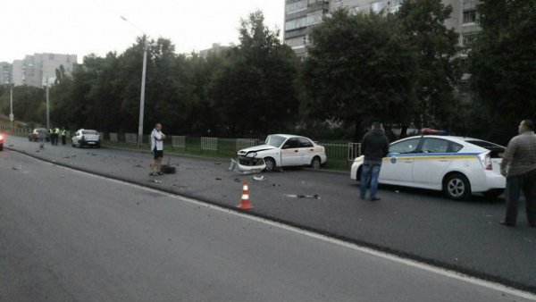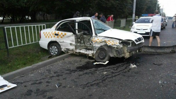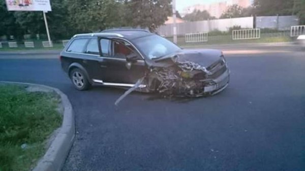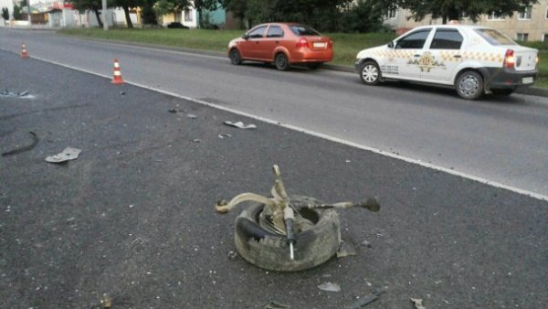 От удара, у Audi оторвалось колесо, а автомобиль пронесло еще на 160 метров. После того, как он остановился, его водитель подбежал к пострадавшему водителю такси и пытался его побить.