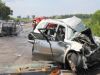 На месте столкновения работала оперативно-спасательная группа. Используя гидравлические ножницы они разрезали боковые двери транспортного средства и освободили пострадавших с покореженного автомобиля.