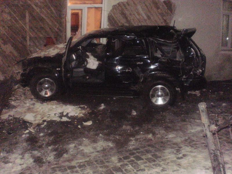 После наезда на человека, водитель автомобиля Mitsubishi Pajero въехал в жилой дом, выбив при этом стену и попав в квартиру, где в комнате находился 34-летний хозяин квартиры.
