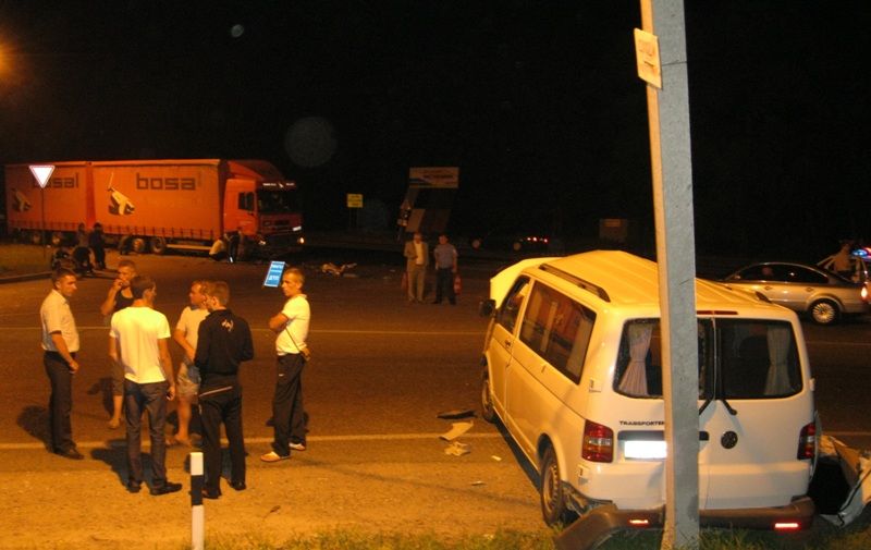 9 августа, около 23:00 на автодороге "Киев-Чоп" в Пустомитовском районе Львовской области столкнулись микроавтобус VOLKSWAGEN-T5 и грузовик DAF с полуприцепом.