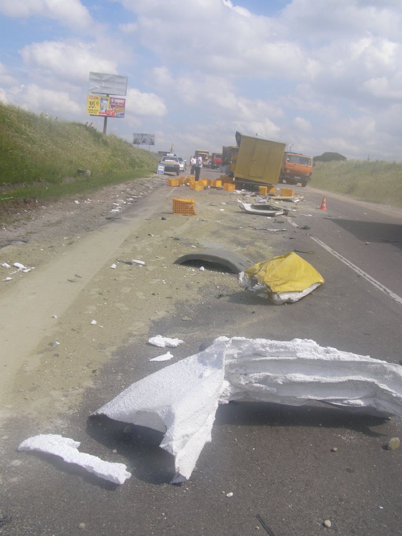 28 июля на объездной дороге Львова (возле кафе «Панська гора») произошло столкновение двух грузовых автомобилей - ТАТА (автомобиль был загружен хлебобулочными изделиями) и Volvo (автомобиль перевозил песок).