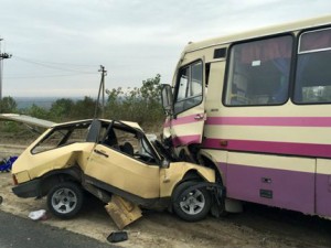 Львовская область: ВАЗ 2108 влетел в маршрутку - водитель погиб. (Фото)