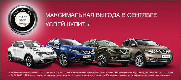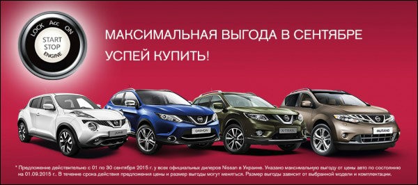 До 30 сентября у Вас есть возможность ощутить все прелести автомобилей модельной линейки Nissan и при этом прилично сэкономить.