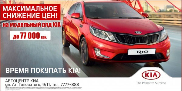 Максимальное снижение цен на автомобили KIA! Цены снижены до 77 000 грн.!