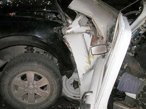Волга с прицепом двигалась со стороны п. Мелекино в направлении Мариуполя. Возле троллейбусного кольца водитель Mitsubishi, который двигался во встречном направлении, начал поворачивать влево и протаранил Волгу.