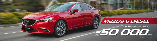 Только с 07.08.17 по 31.08.17 не упустите шанс стать обладателем стильной и драйвовой Mazda 6 Diesel со специальными скидками до 50 000 грн.*.