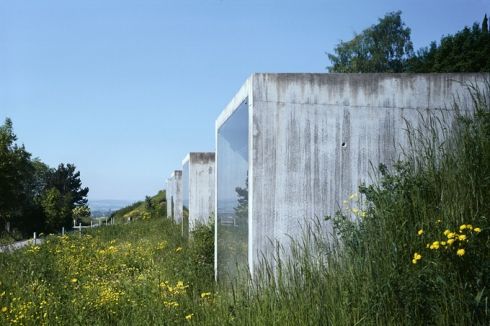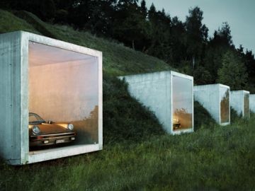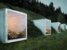 Наверное, так подумали дизайнеры студии Peter Kunz Architektur, которые создали уникальный гараж внутри горы. Пять бетонных кубов, интегрированных в гору, выходят на поверхность, и закрываются прозрачными стеклянными дверями. Проект рассчитан на 8 автомобилей - более чем достаточно для личной коллекции.
