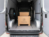 Техническая начинка у Mercedes-Benz eSprinter такая же, как у утилитарного минивэна eVito: на передней оси установлен 114-сильный (крутящий момент 295 Нм) электромотор, под полом разместился тяговый аккумулятор ёмкостью 41 или 55 киловатт-часов. Вместимость и габариты не изменились: объём грузового отсека — 10,5 м³, полная масса фургона — 3500 килограммов, длина от бампера до бампера — 5932 миллиметра.