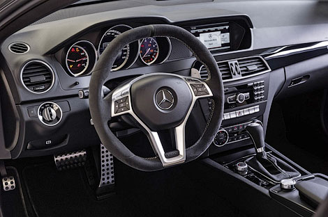 Помимо этого, новинка получила алюминиевый капот от C63 AMG Black Series, спойлер на кромке крышки багажника, другие 19-дюймовые колесные диски с покрашками размерности 235/35 спереди и 255/30 сзади, а также мощные тормозные механизмы с окрашенными в красный цвет суппортами, более выносливыми и легкими дисками.