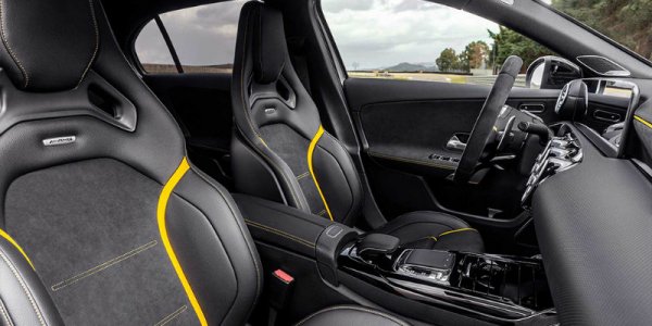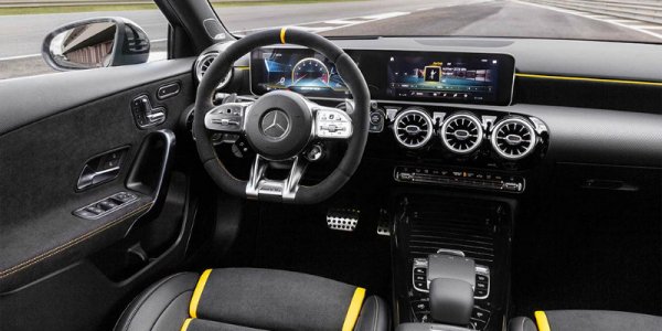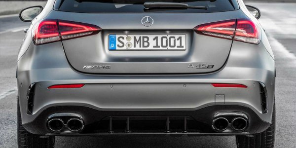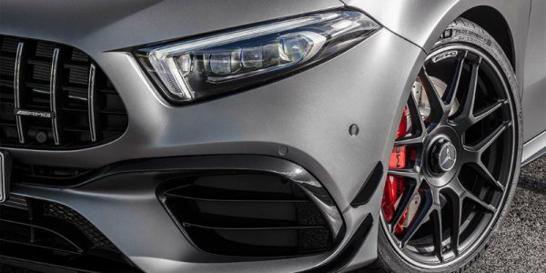 Узнать новый Mercedes-AMG A45 2020 можно по огромной пасти радиаторной решетки, обвесу и антикрылу на крыше. В стандартной версии колесные диски 18-дюймовые, а в A45 S – 19-дюймовые.