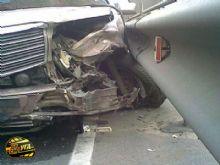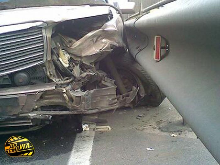 По словам свидетелей, все машины двигались в сторону Индустриального моста. Сначала «Mercedes» подрезал маршрутку, при этом ему не удалось избежать контакта с «Богданом» (у него на правой стороне следы красной краски). После этого «немец» сместился левее и зацепил «Daewoo» и начал тормозить об отбойник. Процесс оказался длительным - «штутгартский мессершмит» «скосил» около десяти метров отбойника... В этом ДТП люди не пострадали...