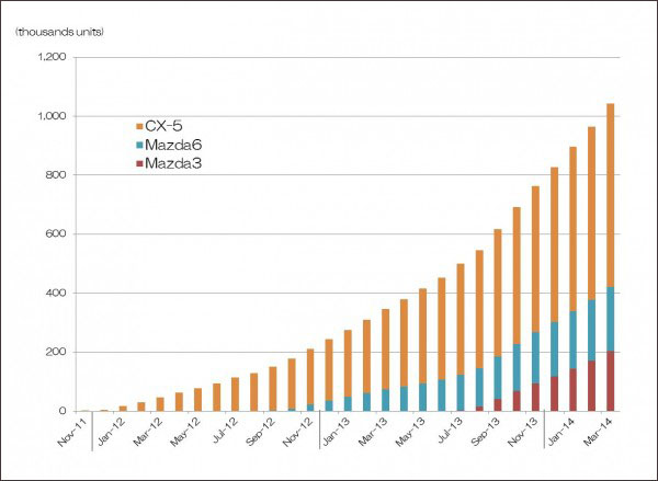 Глобальное производство нового поколения Mazda преодолело отметку в миллион единиц. Все три модели (Mazda CX-5, Mazda6 и Mazda3) оснащены полным спектром инновационных технологий SKYACTIV – настоящий прорыв в автомобилестроении от компании Mazda.