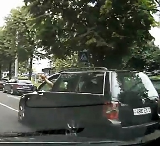 Конфликтная ситуация возникла на ул. Кедышко. На записи видно, как Volkswagen Passat с левым указателем поворота отъезжает от края проезжей части и перегораживает дорогу автору видео. Судя по всему, последний просигналил. После этого водитель универсала несколько раз пытался опередить его на ул. Толбухина, явно не выдерживая безопасный боковой интервал. При этом молодой человек демонстрировал средний палец. В какой-то момент водителю Volkswagen удалось опередить автора, затем он резко затормозил и вышел из машины.