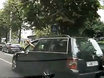 Минск: водитель Volkswagen подрезал, заблокировал дорогу и вышел разбираться. (Видео)