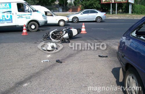 На регулируемом перекрестке водитель мопеда не выбрал безопасную дистанцию и столкнулся с легковушкой Toyota. После чего мопед отбросило влево, где он влетел в другой легковой автомобиль Subaru, который двигался в попутном направлении.