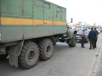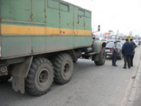 По объяснению водителя грузовика – он просто не заметил маленькую ВАЗовскую «десятку», поэтому «чуть-чуть было, не переехал ее».