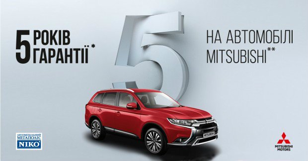 Официальный дилер Mitsubishi в Киеве и Киевской области «НИКО Диамант» сообщает, что действует гарантия на 5 лет.