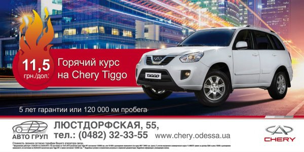 Популярный среди украинских автолюбителей кроссовер Chery Tiggo можно приобрести в сентябре по привлекательной цене в гривне с фиксированным курсом – 11,5 грн./$!.