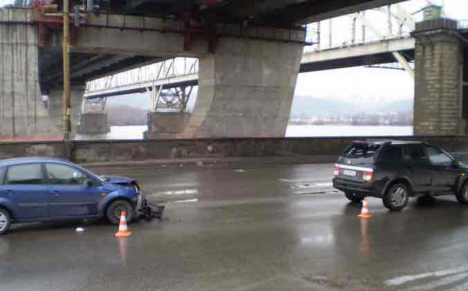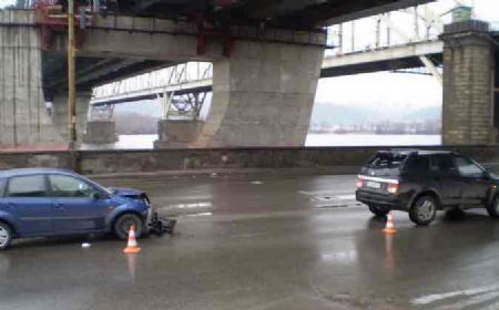 Сегодня около 11:00 на Днепровской набережной в направлении моста Патона под железнодорожным мостом произошло столкновение автомобилей Ford Fiesta и SsangYong Kyron, сообщает .