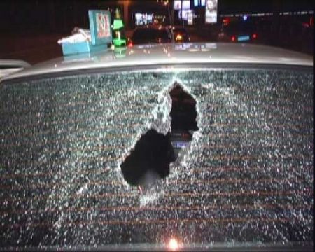 По словам пассажира Ваз-2115 они ехали и вдруг что-то влетело в лобовое стекло… Позже выяснилось что это что-то скорее всего пуля из огнестрельного оружия. Пуля зацепила водителя, и разорвав покрытие в салоне, вылетела рикошетом через заднее стекло. Водителя отправили в институт Нейрохирургии с рваной раной головы.