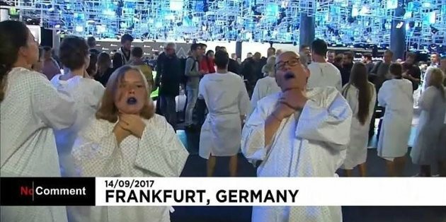 На Франкфуртском мотор-шоу можно увидеть не только новинки автопрома, но и задыхающихся людей с синими губами, сообщает .